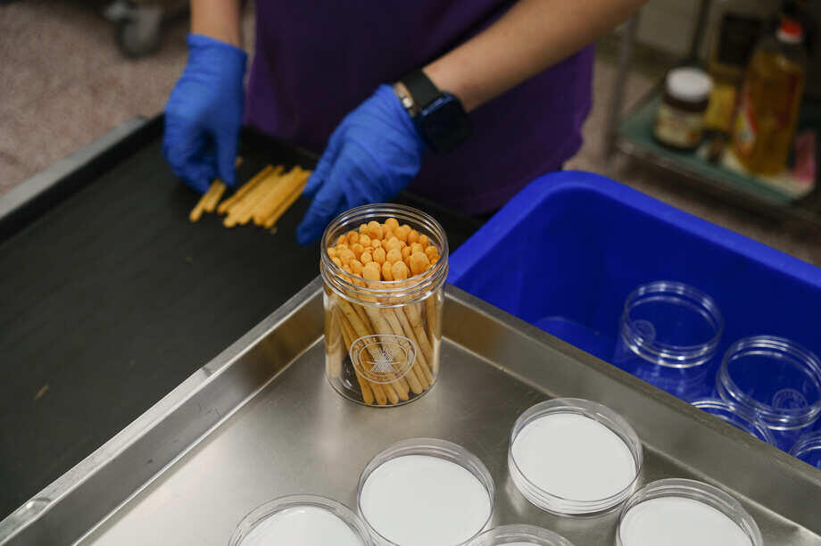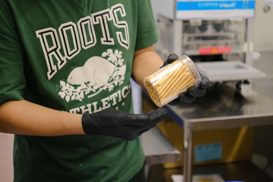 El Sr. Chen explicó que, antes, los palitos de queso solían envasarse en tubos cilíndricos. Como cada palito es largo y delicado, había que introducirlos manualmente uno por uno, un proceso lento. Además, a los clientes les costaba sacarlos sin romperlos.