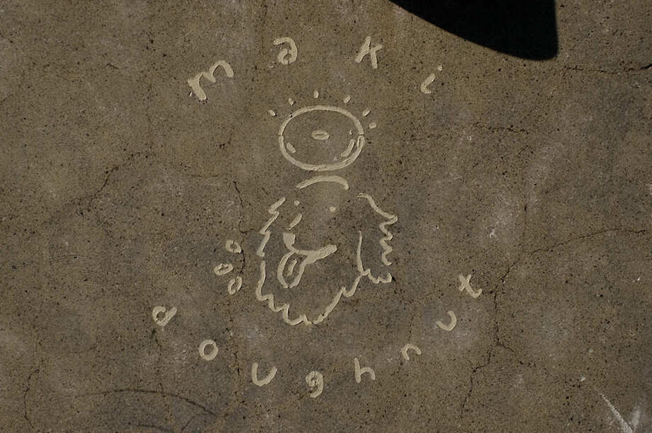 P2: ¿Hay una historia especial detrás del logo de “Maki Doughnut”? Maki: El perro del logo es en realidad mi antigua mascota, pero falleció mientras estaba en Japón aprendiendo postres.